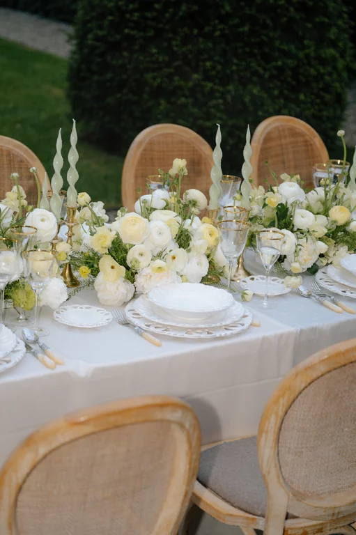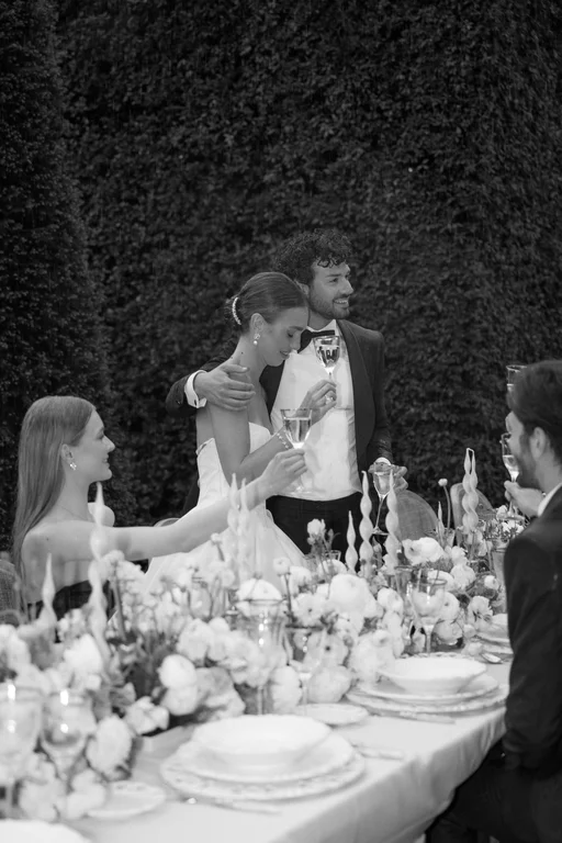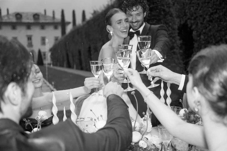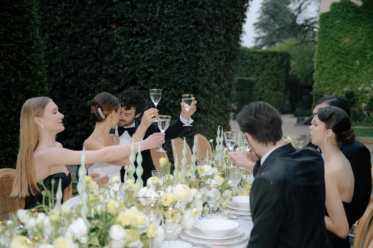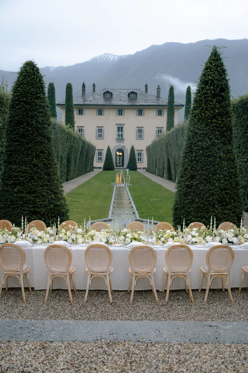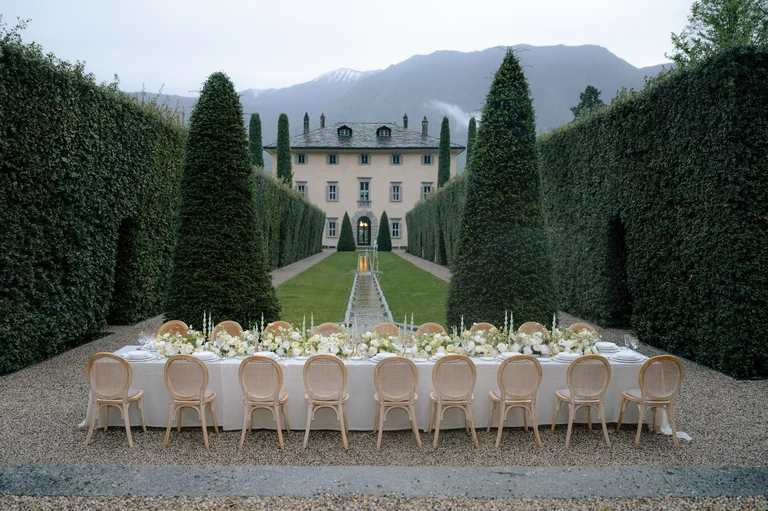 As dusk fell over Villa Balbiano, the gardens glistened softly from earlier summer showers. The long banquet tables felt even more intimate against the moody sky. Crisp linens, delicate florals, and golden accents caught the soft greens, while the villa’s iconic façade stood majestically in the background. Guests raised their glasses, the sound of laughter and the gentle patter of rain blending into the music of the night. It was an evening wrapped in elegance and warmth – a perfect close to a day that proved beauty shines just as brightly under grey skies. The party started right after in the villa and ended in the early hours of the morning. What a day.
