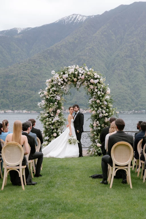 Few Lake Como wedding venues can match the magic of Villa Balbiano’s gardens. With the shimmering lake as a backdrop and the villa’s historic façade behind, every angle offers a cinematic frame. Guests arrive to the soft hum of conversation, surrounded by the fragrance of blooming flowers. From my perspective as a destination wedding photographer in Italy, it’s the kind of setting where every photograph feels like a timeless painting. Even with some cloudy moments lake Como delivers stunning moments and iconic views.