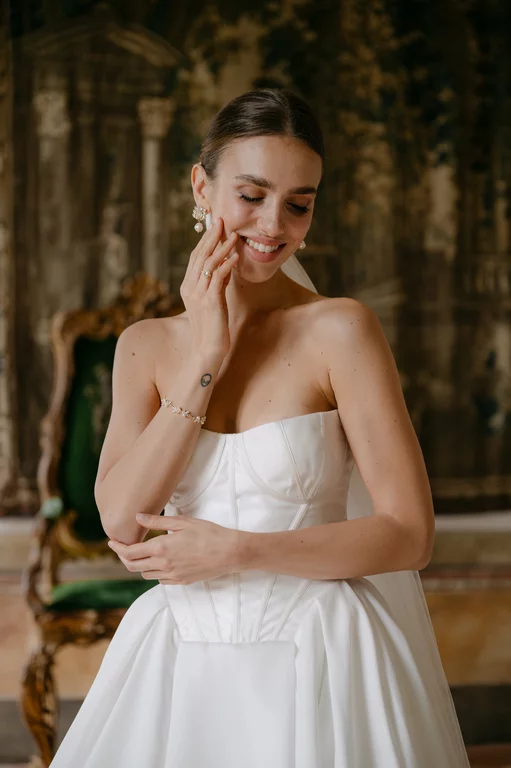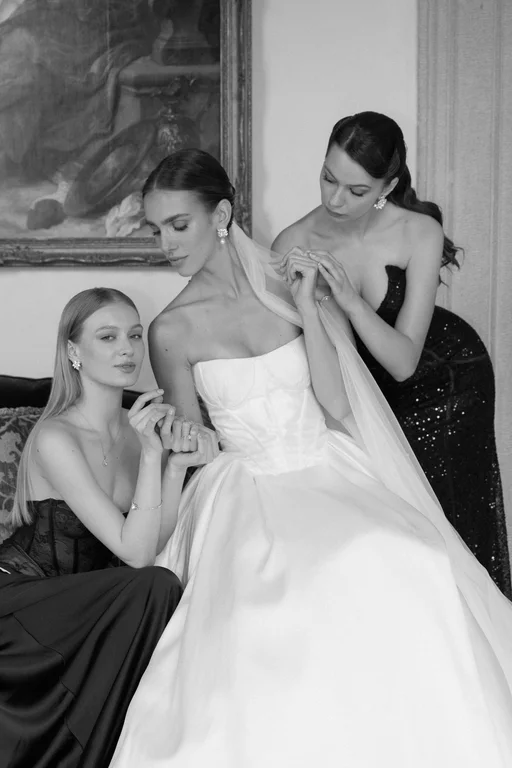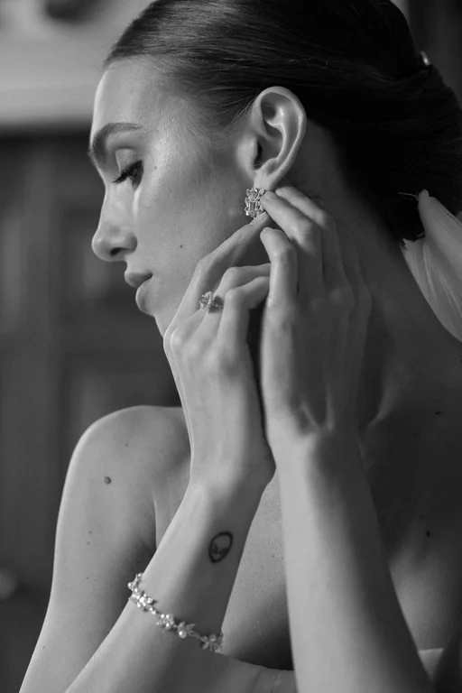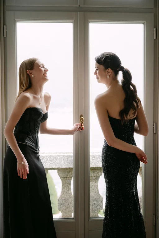 One of my favourite moments to capture as a Lake Como wedding photographer is the getting ready. At Villa Balbiano, the morning light spills gently into the suites, highlighting every exquisite detail – the delicate lace of the gown, the perfume bottle on the vanity, the heirloom jewellery carefully laid out.