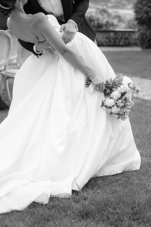After the ceremony, we slipped away into the gardens of Villa Balbiano for a quiet moment. I always encourage my couples to use this time not just for portraits, but to breathe, take each other in, and let the day sink in. Surrounded by the villa’s manicured lawns and centuries-old trees, the atmosphere felt calm and intimate – a pause in the midst of celebration. The result is images that feel unposed, deeply personal, and full of connection.